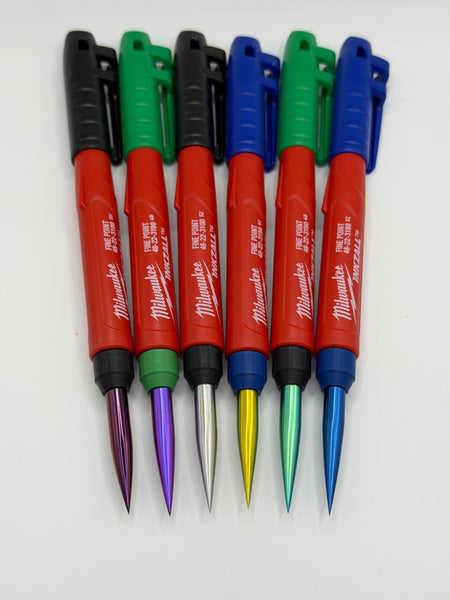 The HexZall is a quality name brand marker with a 6mm core epoxied inside, They are available with Black, Red, Green, or Blue caps and the full complement of 3D printed collar colors and core options. The body will always be red.
